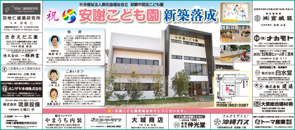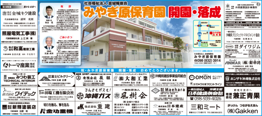 新社屋・新店舗・公共施設・工場など、建物の完成は企業や地域にとっての大きな節目です。琉球新報開発では、竣工広告・落成広告のご掲載を通して、関係者への感謝と地域への報告を、誠実にお届けするお手伝いをしています。