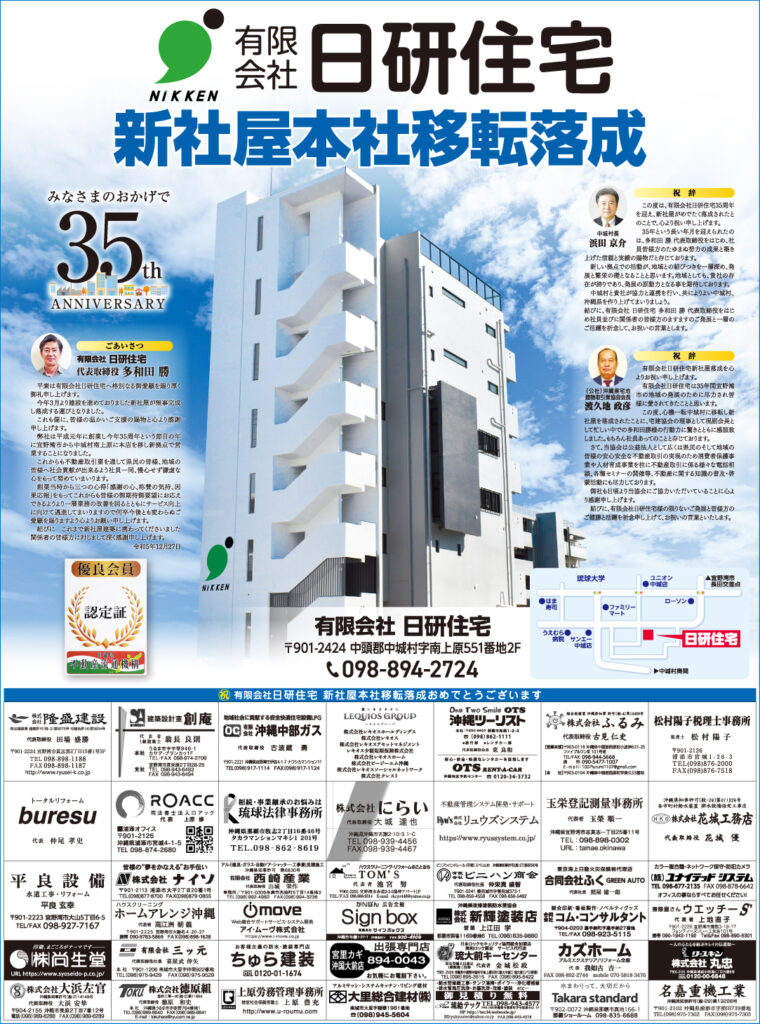 有限会社日研住宅 様(本社移転落成広告 FC/15段)