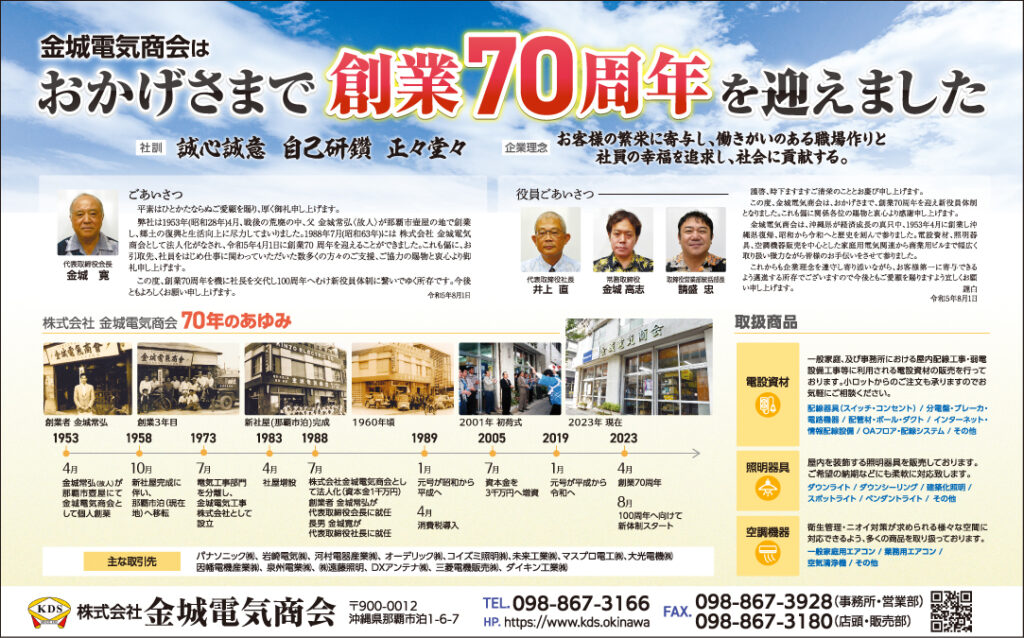 株式会社金城電気商会 様(創立70周年広告 FC/7段)